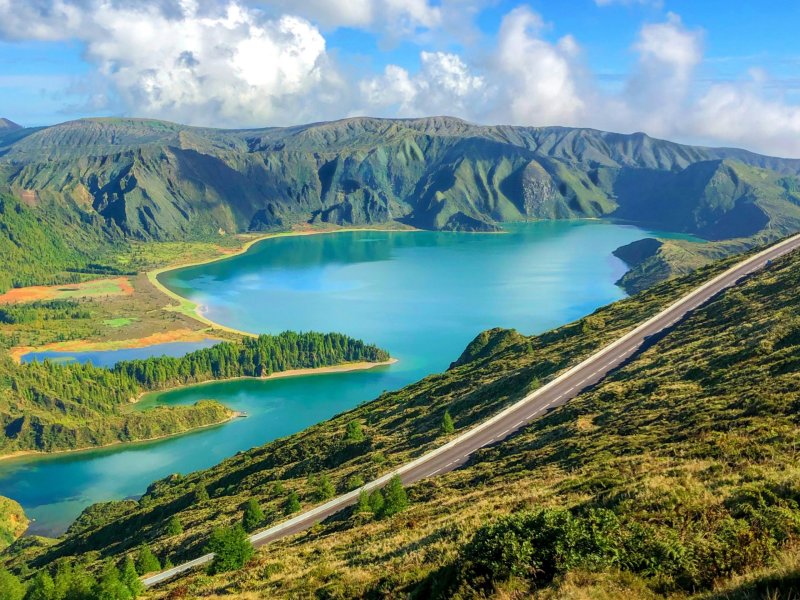 Pico do Carvão, horizon sur l’océan et le centre de l’île. Le Miradouro da Vista do Rei, panorama sur les Lagoas Verde et Azul, situés au fond de l’immense cratère volcanique. Visite guidée de la paroisse de Sete Cidades, dans le cratère. Varzea, déjeuner. Vue panoramique sur les Monastères. Fajã de Baixo, découverte d’une plantation d’ananas avec dégustation.